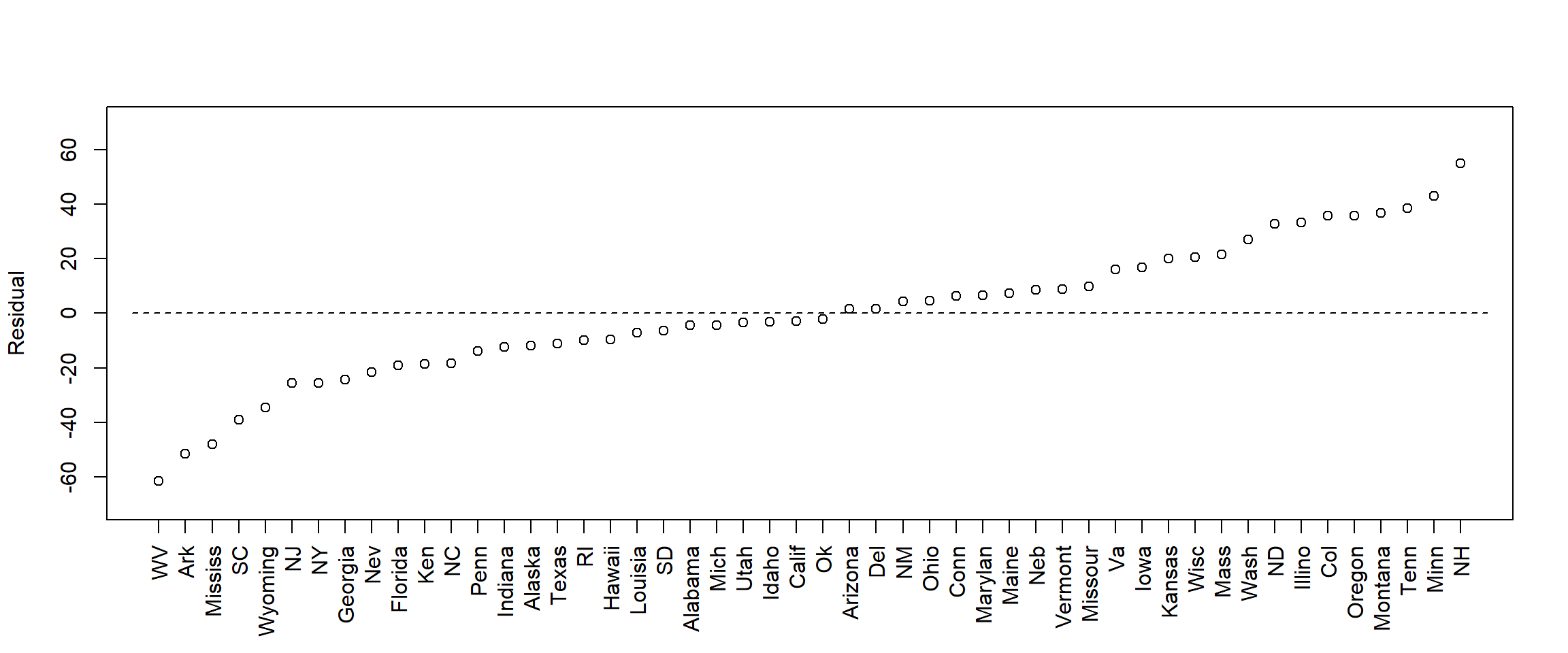 d <- data.frame(state, expend, psat, psatlog, ptratio, salary, sat)