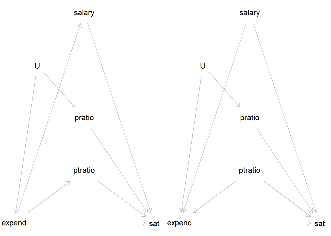 h <- read.table("./datasets/sat_howell.txt", header = TRUE, sep = ',')Research question: Estimate the causal effect of State school spendings (expend) on SAT-scores (sat)