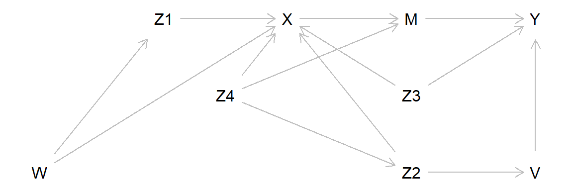 x = c(W = 1, Z1 = 2, X = 3, V = 5, Z2 = 4, M = 4, Y = 5, Z3 = 4, Z4 = 2.5),