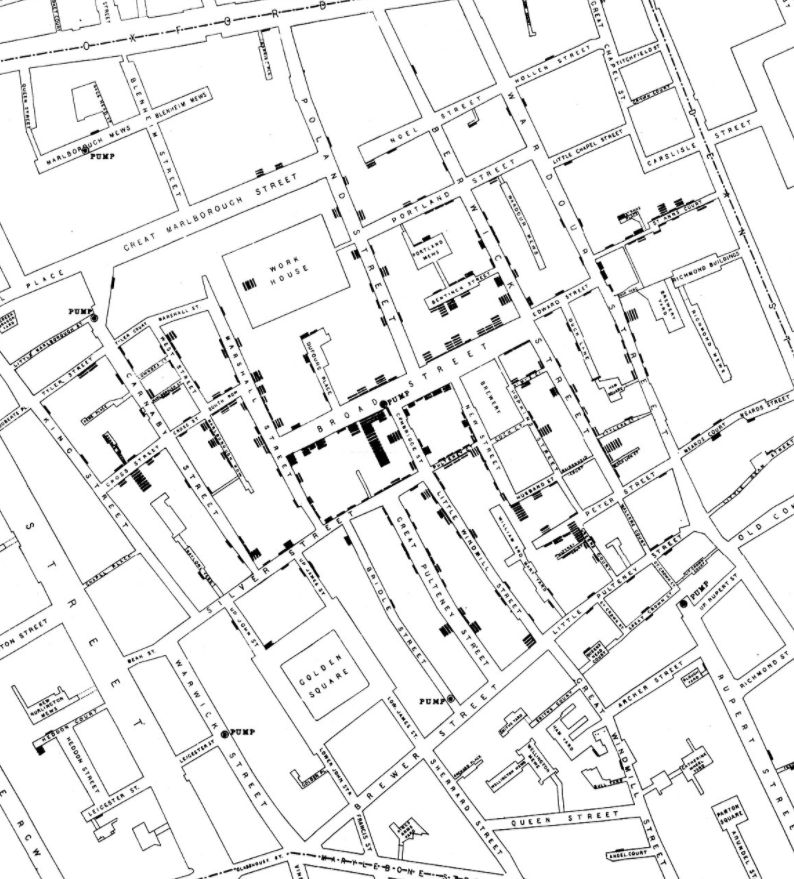 “… Each company supplies both rich and poor, both large houses and small; there is no difference in the condition or occupation of the persons receiving the water of the different companies… As there is no difference whatever either in the houses or the people receiving the supply of the two Water Companies, or in any of the physical conditions with which they are surrounded, it is obvious that no experiment could have been devised which would more thoroughly test the effect of water supply on the progress of Cholera than this, which circumstances placed ready made before the observer…”