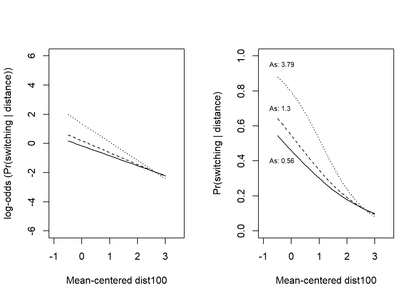 lines(xx$c_dist100[xx$c_educ4 == edu[2]], xx$ypred[xx$c_educ4 == edu[2]], lty = 2)