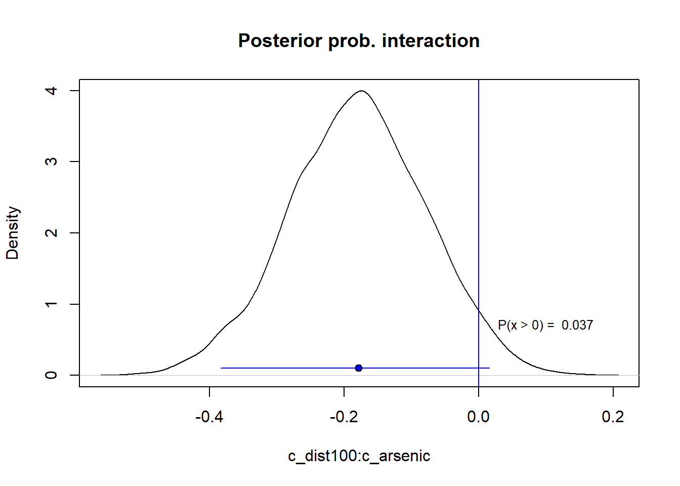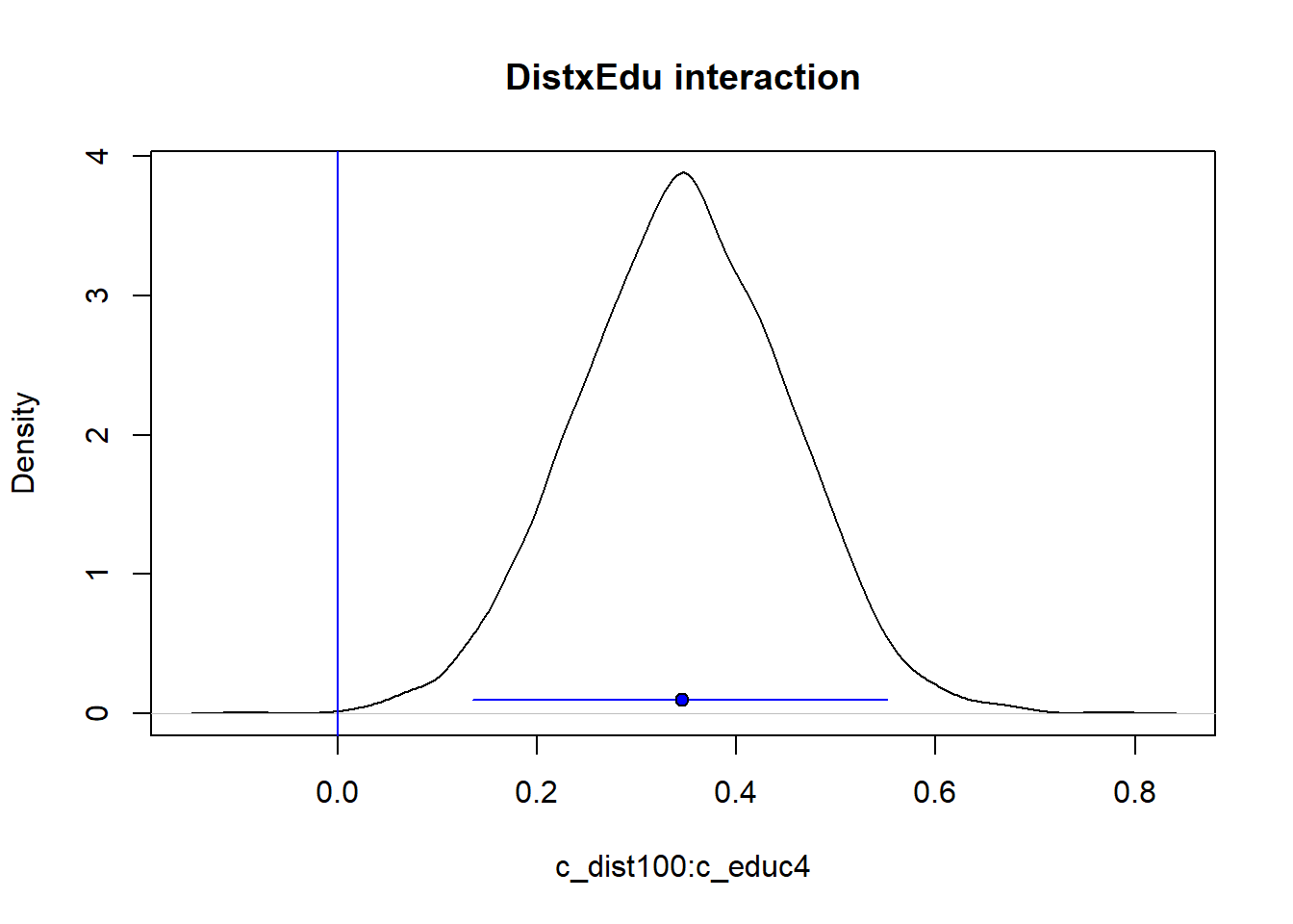 lines(quantile(s9$c_dist100.c_educ4, prob = c(0.025, 0.975)), c(0.1, 0.1), col = "blue")