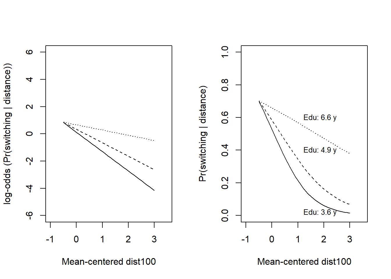 lines(xx$c_dist100[xx$c_educ4 == edu[1]], xx$ypred[xx$c_educ4 == edu[1]], lty = 1)