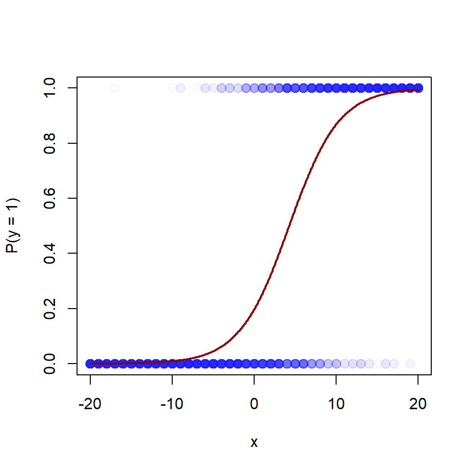 col = rgb(0, 0, 1, 0.02), cex = 2, xlab = "x", ylab = "P(y = 1)")